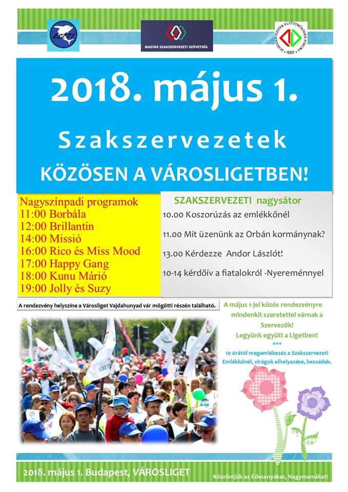 Május 1. a munka ünnepe, a mi ünnepünk. A nemzetközi munkásmozgalmak által kiharcolt ünnepnap, a legtöbb országban hivatalos állami szabadnap, amely a munkások által kiharcolt gazdasági és szociális vívmányokról hivatott megemlékezni. Budapesten a Városligetben mi is várunk mindenkit, egy közös ünneplésre.