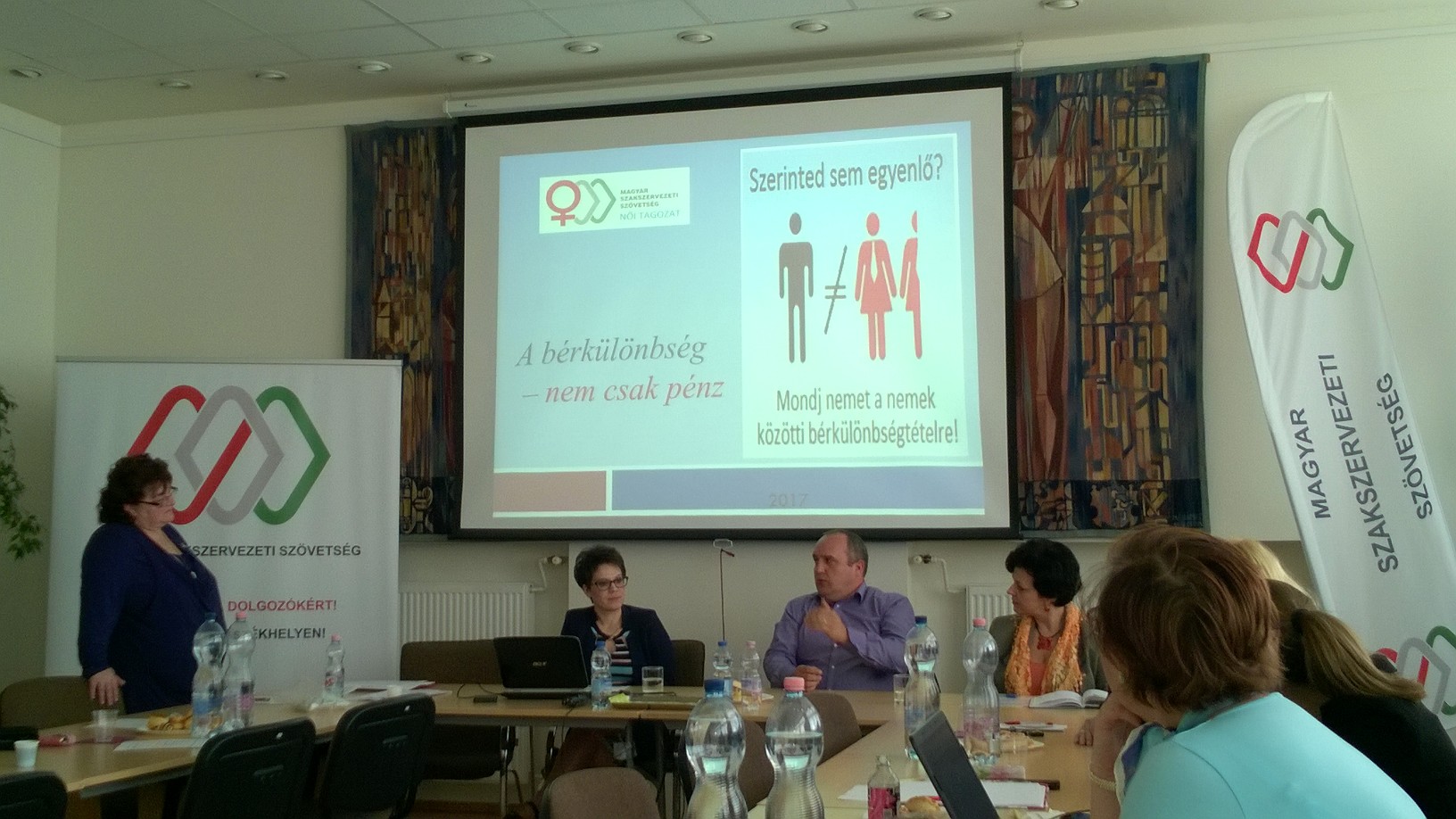 A Magyar Szakszervezeti Szövetség Női Tagozata és annak egyik alapítója a Vasas Nőbizottsága elfogadhatatlannak tartja, hogy kevesebbet fizetnek a munkádért, pusztán azért mert nő vagy, különösen annak tükrében, hogy az EU 2014-ben tett egy ajánlást a tagállamok felé a probléma kezelésére. 2017 tavasza van, és politikai szinten semmi érdemi nem történt az ügyben, és ha nem teszünk érte, nem is fog. Nem kérdeztek meg minket, csak így döntöttek. A Szövetség Női Tagozata 2016. június 16-i alapítói ülése elhatározta, hogy országos kampányt szervez a nők és férfiak bérkülönbségének megszüntetéséért. Ennek egyik állomása volt a március 31.-i tudást átadó konferencia.