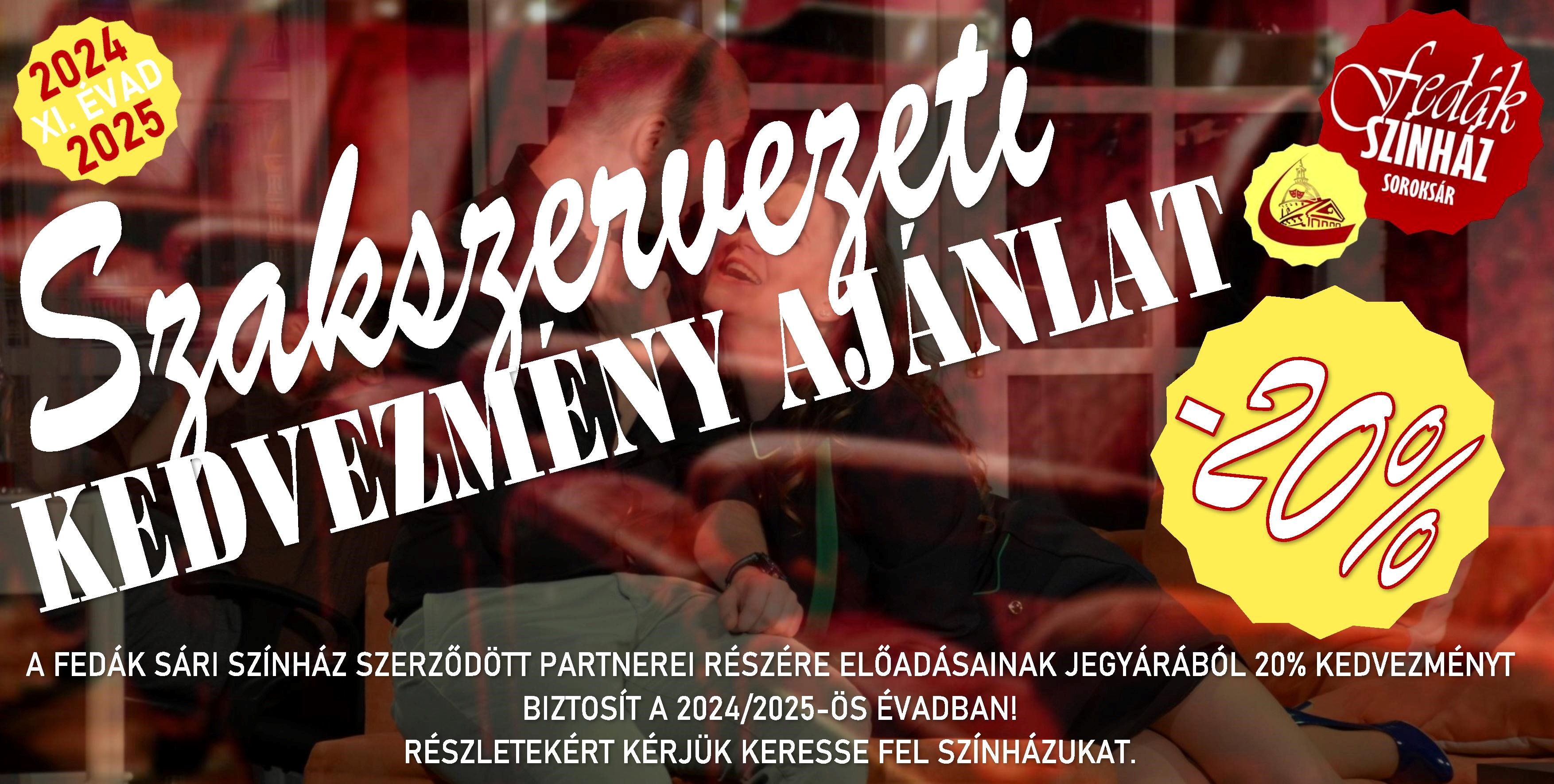 A szakszervezeti tagok részére 20%-os kedvezményt ajánlunk, melyet biztosítunk az évad összes előadására.